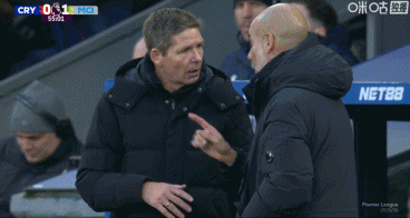 第57分钟,镜头给到瓜迪奥拉与格拉斯纳在场边交流